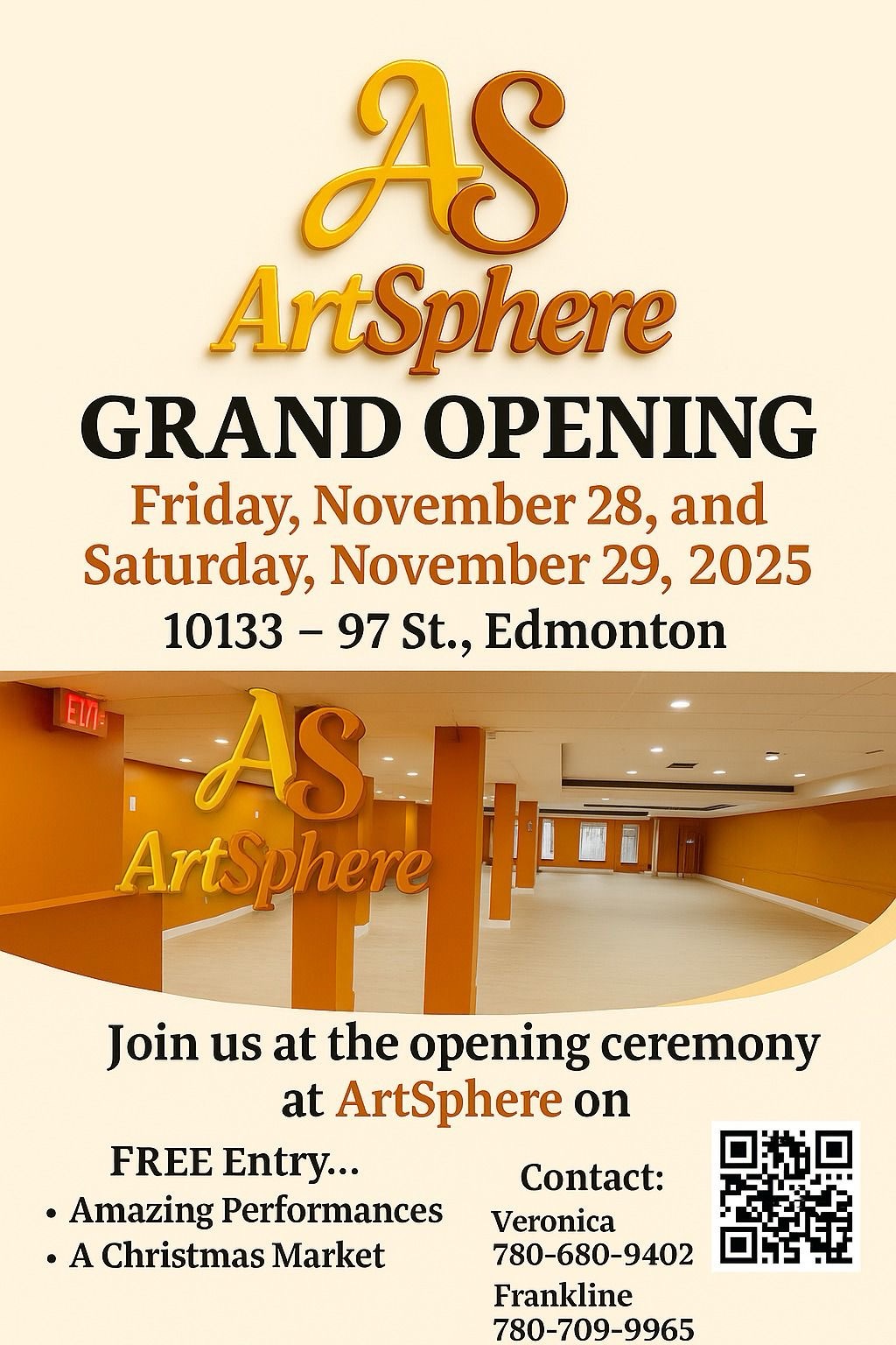 Live performances featuring Edmonton’s diverse artistic talent A digital installation reflecting the city’s evolving creative identity Guided tours exploring ArtSphere’s modern, multi-use creative spaces Photo opportunities perfect for sharing with the wider community