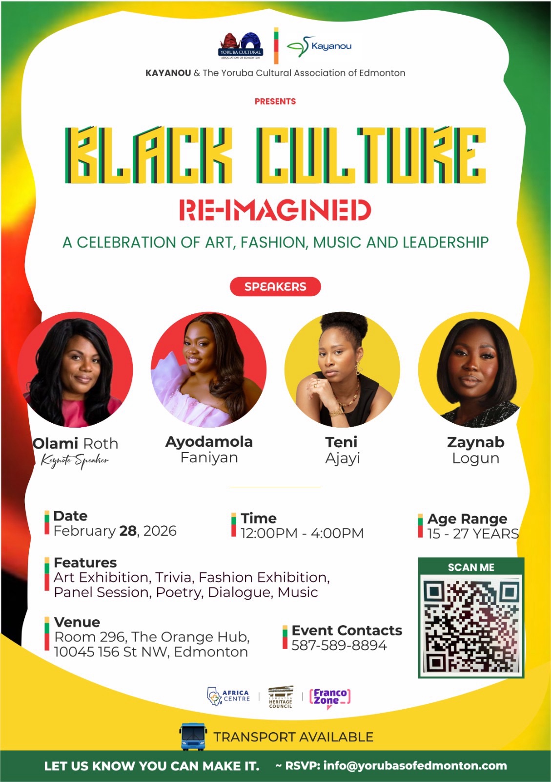 On February 28, 2026, Kayanou in partnership with the Yoruba Cultural Association of Edmonton presents Black Culture Re-Imagined — a vibrant and intentional gathering designed to celebrate creativity, identity, and leadership within the Black community.
