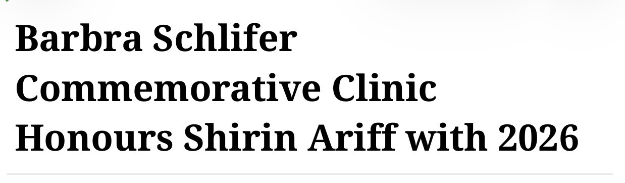 1 week ago Tags BIPOC Barbra Schlifer Commemorative Clinic Honours Shirin Ariff with 2026 Spirit of Schlifer Award Posted by Tee Adeyemo